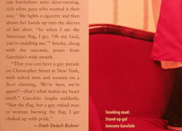 In a profile entitled "Don't Tread On Janeane," written by Trish Deitch Rohrer, Garofalo fumes: