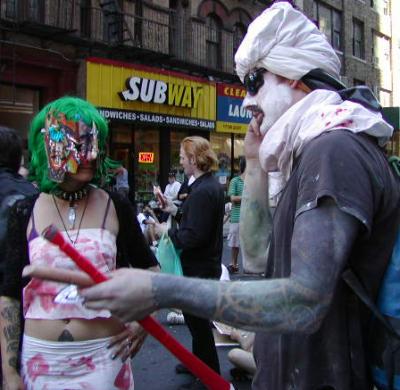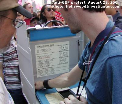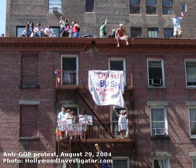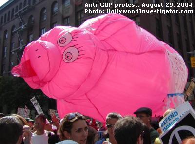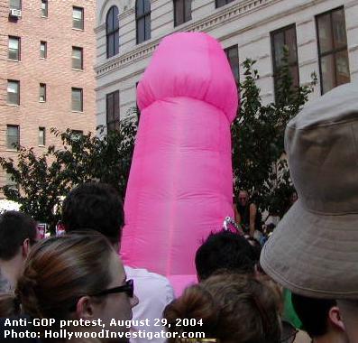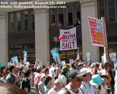 Angry but whimsical protesters filled Manhattan on August 29, 2004 to express