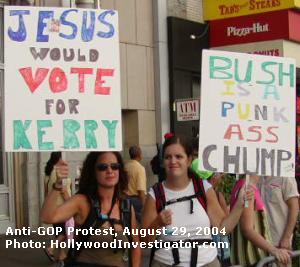 man carried a CommunistsforKerry.com sign (to no one's dismay). But the website turns out to be pro-Bush. |