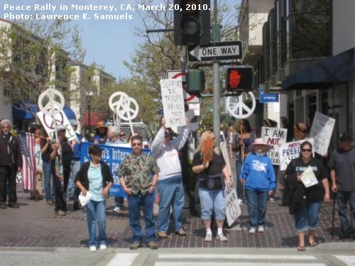 This attitude began to change when we planned a March 20, 2010 Peace Rally in Monterey. This protest was held to commemorate the seventh anniversary of the U.S. led invasion of Iraq.