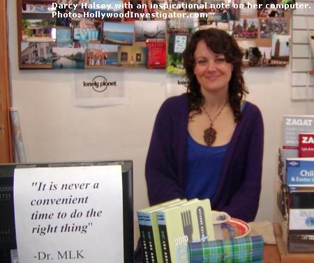 "I've seen the owner spends hours with some customers, sharing travel advice and helping them with their upcoming trips," says actress and store clerk Darcy Halsey.