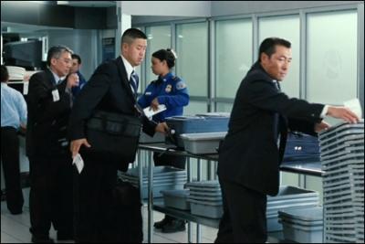 Then he sees Asians on a line, and says, "Bingo. Asians. They pack light, travel efficiently and have a thing for slip-on shoes. God love 'em."