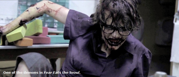 Yet Fear Eats the Seoul is not the first horror film featuring self-aware zombies. The zombies in Return of the Living Dead (1985) were eloquent enough to state their requests for "brain." And the revenant corpses in Children Shouldn't Play with Dead Things (considered by some to be zombies) were carrying out vendettas as far back as 1972.
