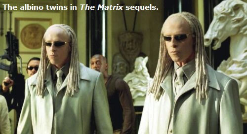 So why an albino? I wondered if maybe it was an homage to the albino twins in the Matrix sequels.