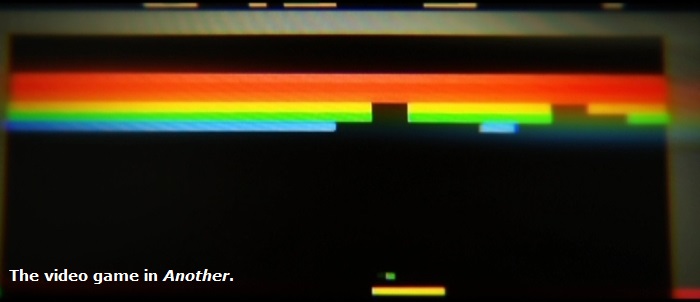 Bognacki's desire to "bring back" giallo imparts a retro sensibility to Another. Jordyn arrives home to find her boyfriend (David Landry) playing a video game on a modern widescreen TV -- yet the game itself appears to be some variation of Pong (initially released in 1972).