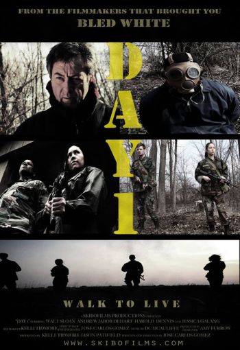 [HollywoodInvestigator.com] Day 1's description -- a story set "in a near post-apocalyptic future" -- raises our expectations for yet another zombie infestation. The opening scene shows a middle-aged man, Kevin (Walt Sloan), tending a campfire in the woods. He ruminates over "how It all began." The cutting of the last tree in the Amazon? The extinction of the bees? Nobody knows for sure.