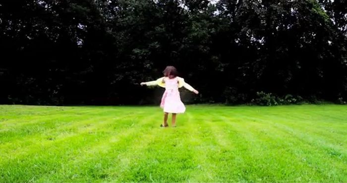 The desaturated present sets a stark contrast to Kevin's happy memories with his daughter (two above images), saturated in rich, primary colors.