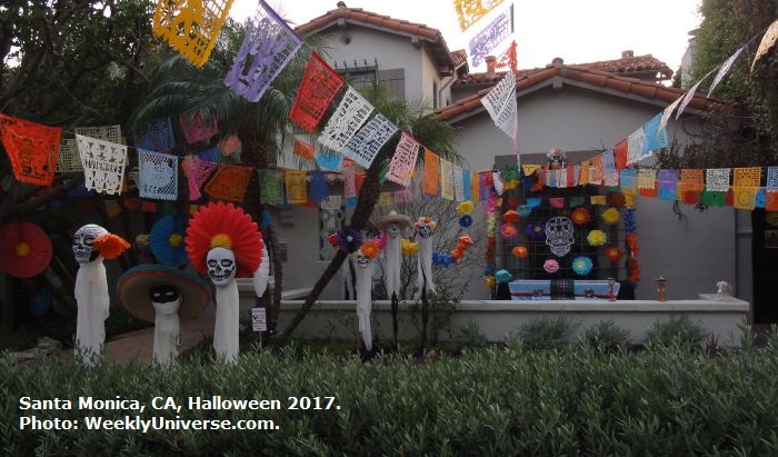 One house in Santa Monica's "North of Montana" Avenue neighborhood -- the richest area in this highly affluent coastal city -- featured a Halloween lawn display with a Mexican Dia de los Muertos theme. The Mexican folk art even includes sombrero-wearing skeletons!