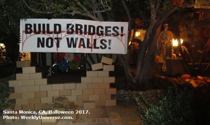 But then the homeowner added this highly politicized message to his lawn display -- a broken wall with a sign urging people to "Build Bridges! Not Walls!"