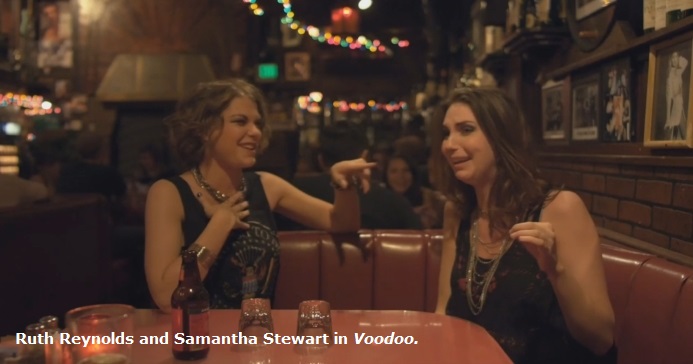 Dani is met at the Hollywood Hills home of her friend, Stacey (Ruth Reynolds). Then follows a not especially original, entertaining, or scary series of scenes about these two dumb, slutty, drunken women, hooting and whooping and partying as they bar hop and hook up with hot guys. They do all the L.A. tourist things -- the Walk of Fame, the Chinese Theater, and Venice Beach. Yes, we can see that VooDoo was shot on location! in Los Angeles. Not that it makes for a better horror film.