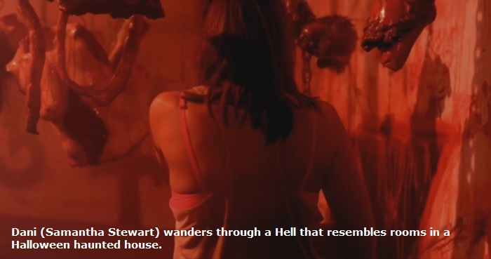 Why is Dani in Hell? Presumably, she died because of the voodoo priestess's curse. But by what action was Dani condemned to Hell? No evil person can condemn an innocent to Hell (though that conceit was used, too casually, in Drag Me to Hell). Events in VooDoo suggest that Dani had been molested by her father, and that she'd had an abortion. Was that her sin? Or was the curse enough to send her to Hell? The film doesn't clearly say.