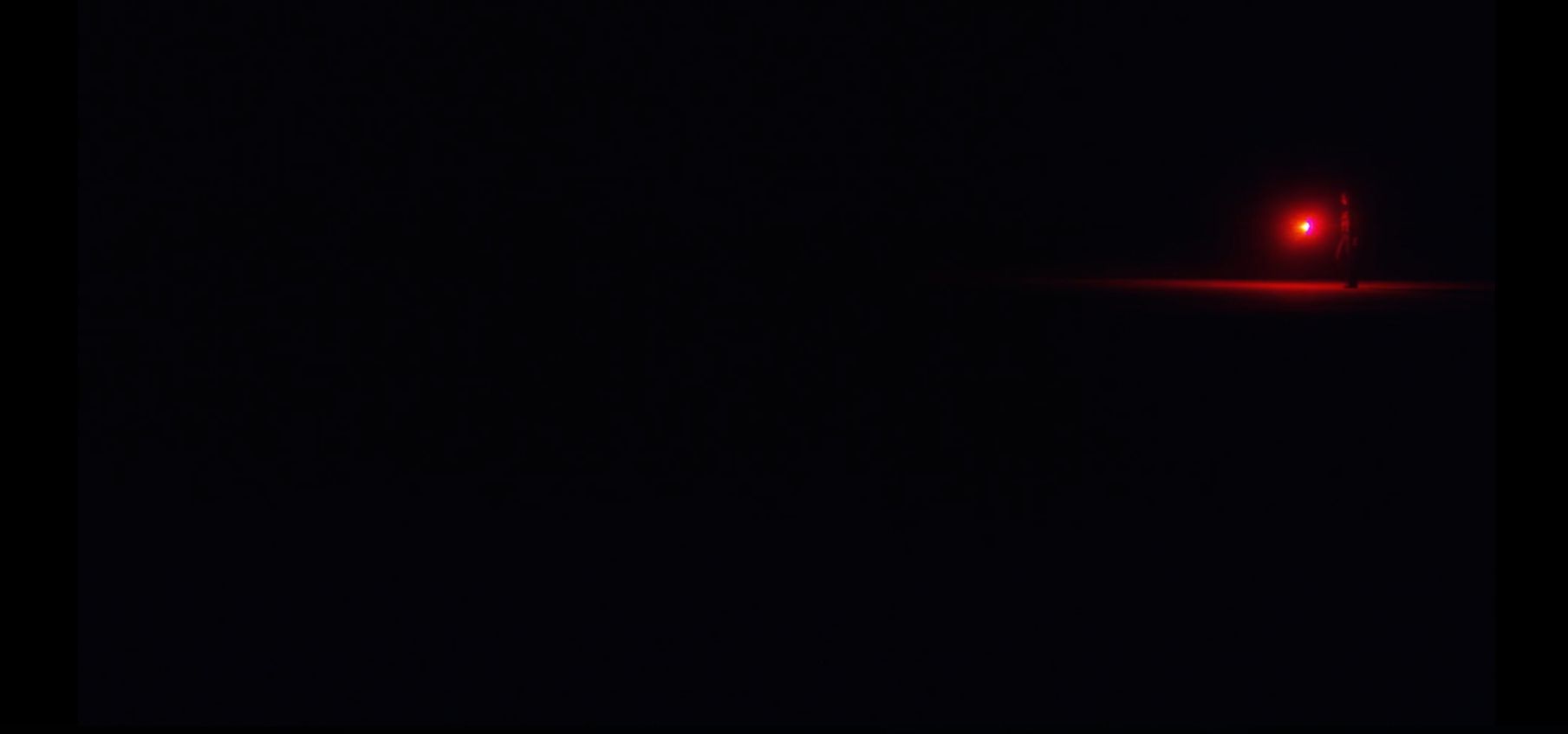 into the darkness holding a flare, and the frame is canted 90 degrees,